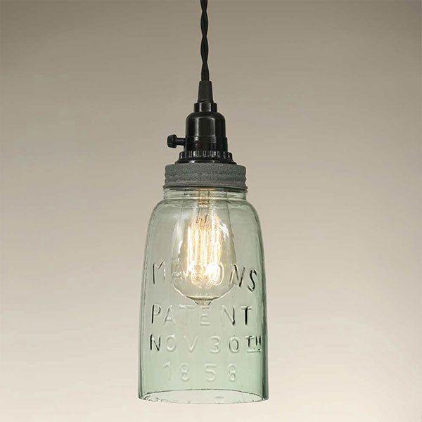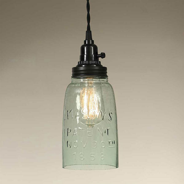 7. Quart Open Bottom Mason Jar Pendant Lamp - Barn Roof