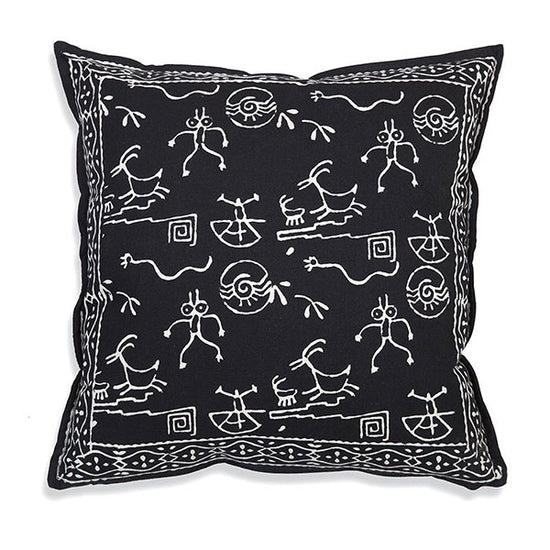 This 18" x 18" throw pillow is 100% cotton with a poly fill and zipper closure.