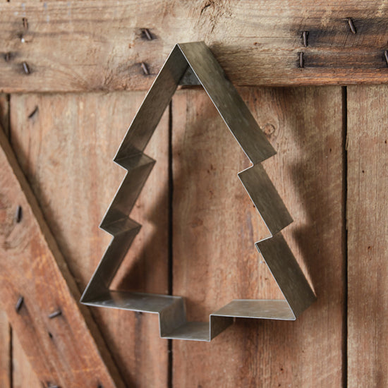 Baking cookies are a staple of Christmas-time activities! Incorporate this large Christmas tree cookie cutter into your fun this year by hanging it on your kitchen wall. This cookie cutter is made of galvanized metal. To hang, use its keyhole hanger.