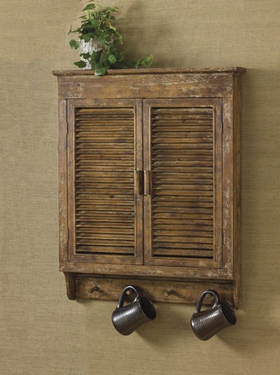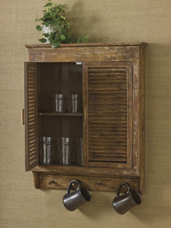 Beautiful wood shutter cabinet.