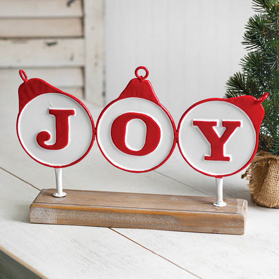 This perfectly sized tabletop sign can fit almost anywhere. The sign is made of metal and sits on a wood stand.