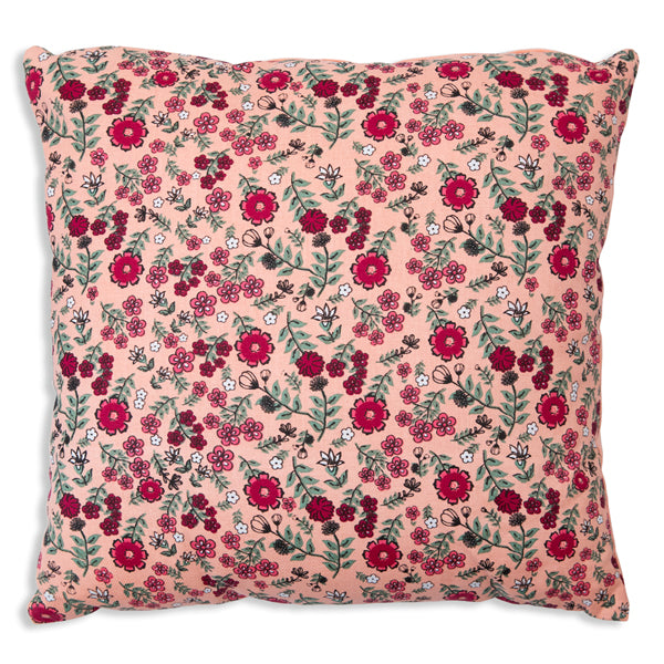 This 18'' x 18'' throw pillow is 100% cotton with a poly fill and zipper closure.